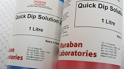 Quick Dip Stain is used to stain blood smears for cell differentiation counts and evaluation. It can be used for general diagnostic cytology. Quick Dip Stain Set is available in 5 litre, 1 litre or 500 ml quantities either as a set or as individual stains. There are three components: Fixative, Stain (Quick Dip I) and Counter Stain (Quick Dip II).